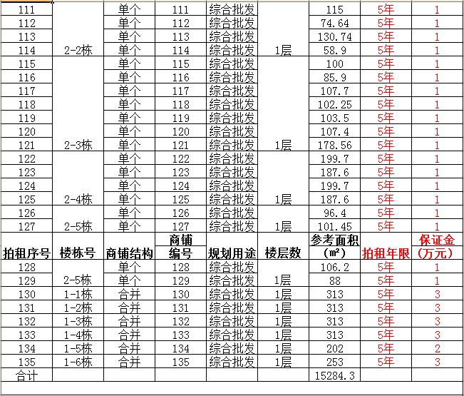 (一)拍租單個(gè)商鋪129間,使用期5年,每間商鋪預(yù)交競(jìng)租保證金1萬(wàn)元, 詳見(jiàn)商鋪簡(jiǎn)介(欲競(jìng)租多間商鋪,保證金類(lèi)推);
