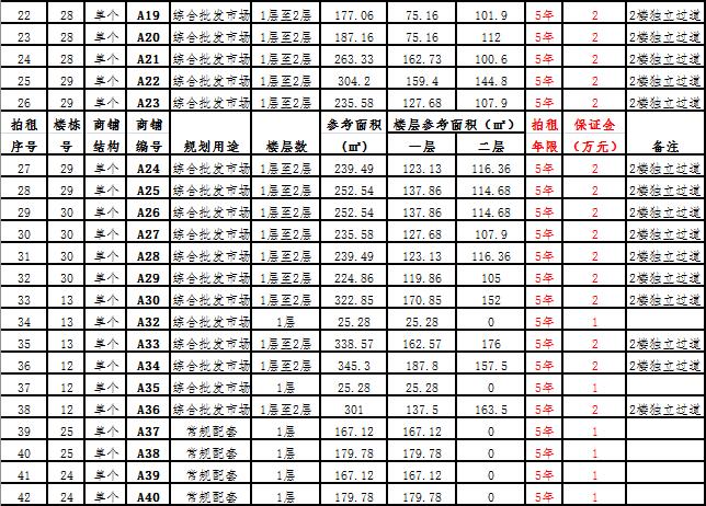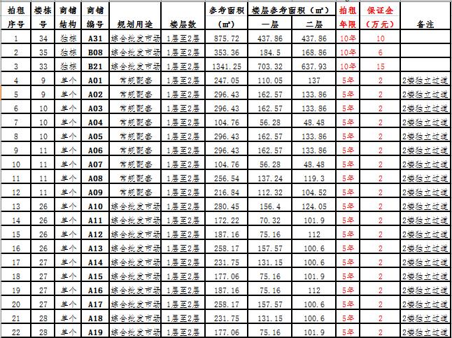 (三)拍租一層單個(gè)商鋪26 間,使用期5年,每間商鋪預(yù)交競(jìng)租保證金1萬元, 詳見商鋪簡(jiǎn)介(欲競(jìng)租多間商鋪,保證金類推)。