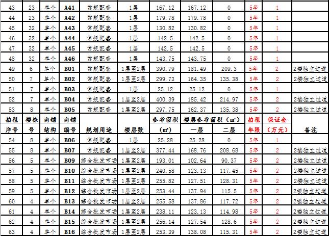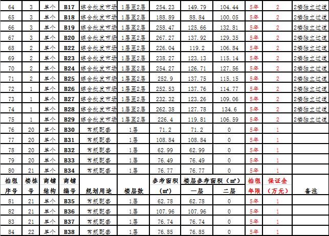 (二)拍租一層至二層合并為一個(gè)商鋪58 間,使用期5年,每間商鋪預(yù)交競(jìng)租保證金2萬元, 詳見商鋪簡(jiǎn)介(欲競(jìng)租多間商鋪,保證金類推)。